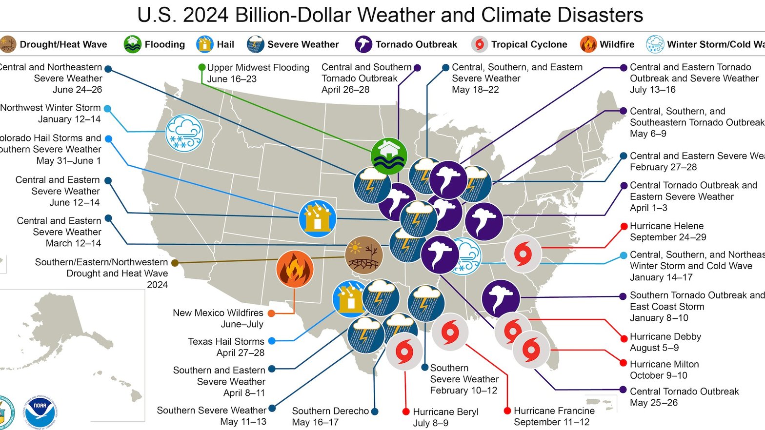Entre 2022 et 2024, il y a eu en moyenne 24 évènements par an qui ont fait au moins un milliard de $ de dégâts aux USA, avec chaque année 150 milliards de $ de dégâts et 500 morts. Trump coupe le budget de la NOAA qui permet de surveiller ces évènements et d'alerter... What could go wrong ?