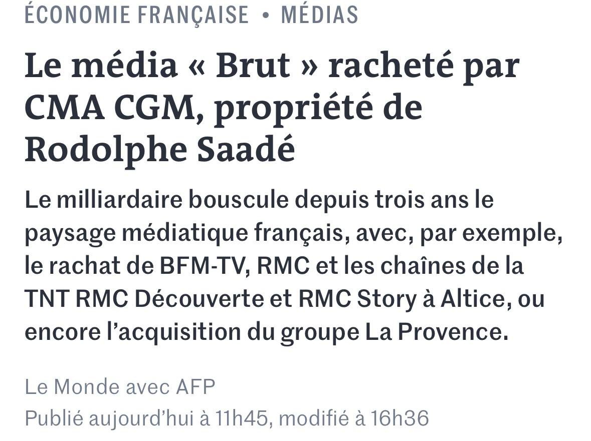 Depuis quelques semaines BRUT faisait des partenariats avec TotalEnergies, ADP... le média vient d'être racheté par un milliardaire.